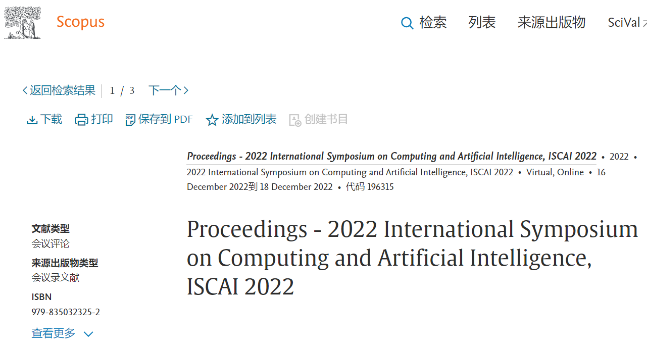 Papers of ISCAI 2022 are indexed by Ei Compendex and Scopus!
